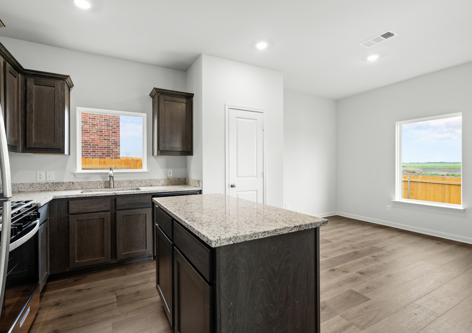 The Sabine plan at Patriot Estates comes with LGI Homes’ CompleteHome™ package. Stylish upgrades featured in this package include energy-efficient Whirlpool® kitchen appliances, sparkling granite countertops, designer wood cabinets with crown molding detail, a Wi-Fi-enabled garage door opener, a programmable thermostat and more. All of these upgrades and more come completely included at no extra cost to you.