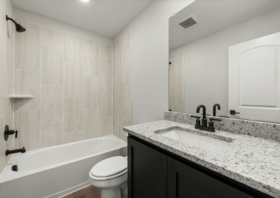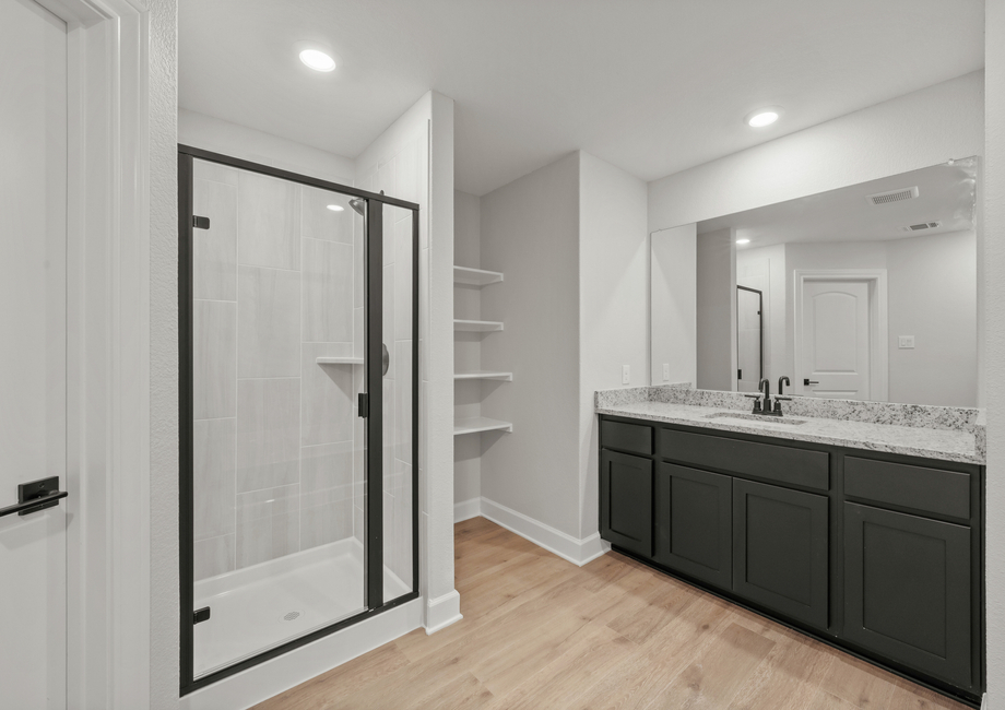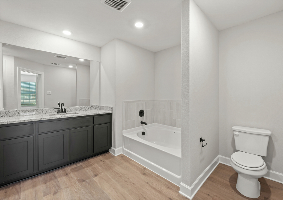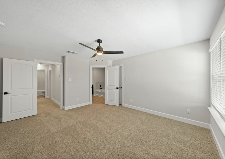 The large, secluded master suite is a highly coveted feature of the Colorado plan. Enjoy the added luxury of a ceiling fan, great natural light, a walk-in closet and a spa-like master bathroom. Inside the master bath, you will find a gorgeous vanity with great countertop space, a large soaker tub, and a standing shower.
