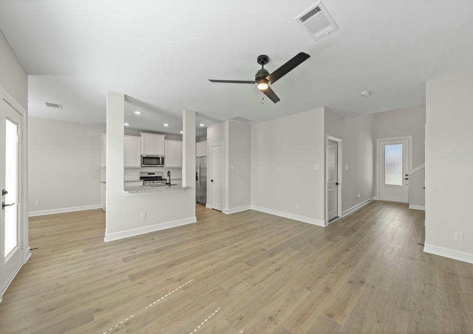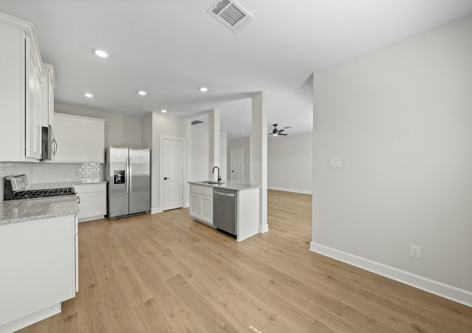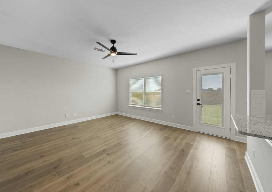 The dining and family room of the Colorado plan are great for gatherings of any kind. Beautiful windows and gorgeous, luxury vinyl-plank flooring, this room is perfect for hosting your friends and family for dinners, holidays and celebrations.