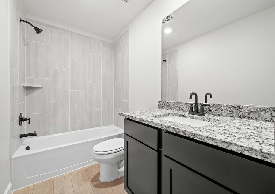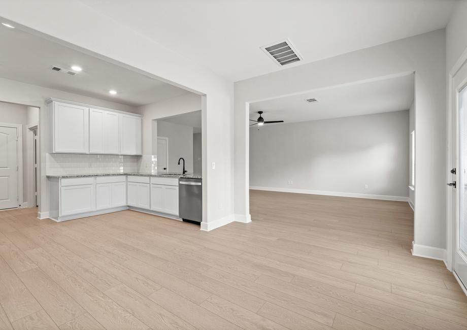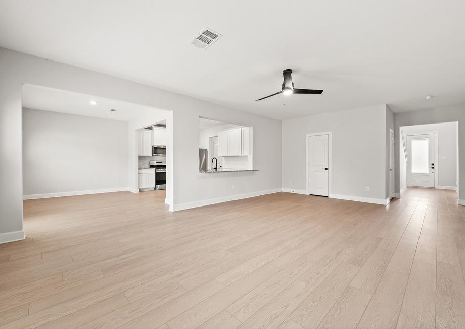 The Rayburn plan at Princeton Heights has a thoughtfully designed layout perfect for a family of any age, lifestyle or budget. Enjoy the spacious living room that opens to the dining room, making it the perfect space for entertaining friends and family. Upstairs, your family will enjoy the added entertainment space of a game room. This room can be used as a second living room, a home office, a children’s playroom and more. This home also comes with a fully fenced back yard, allowing your family fun to continue outdoors while still enjoying the privacy of your own home.