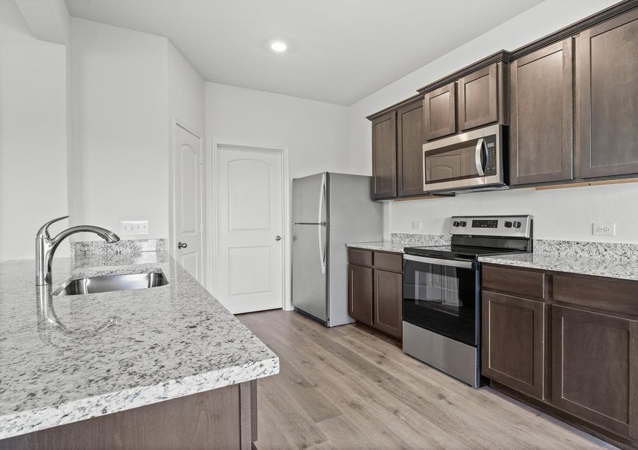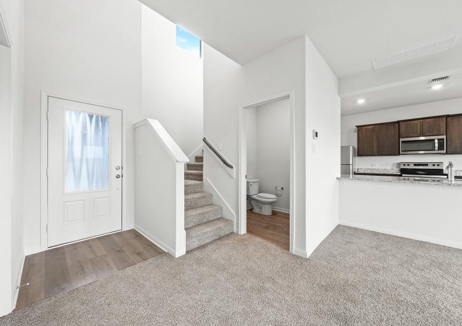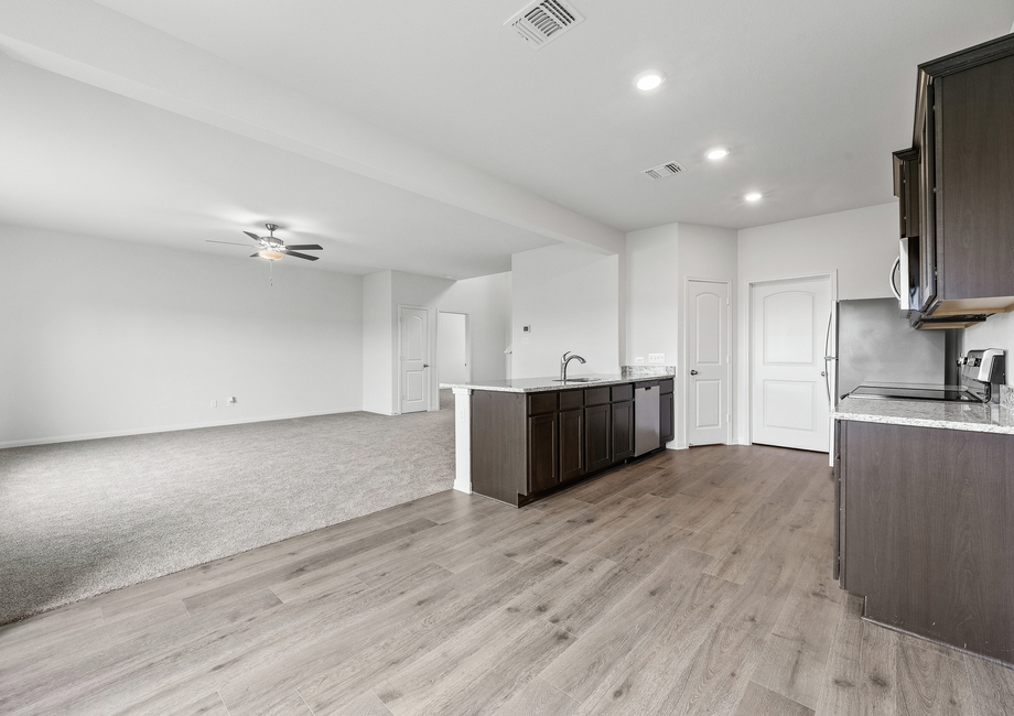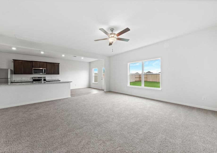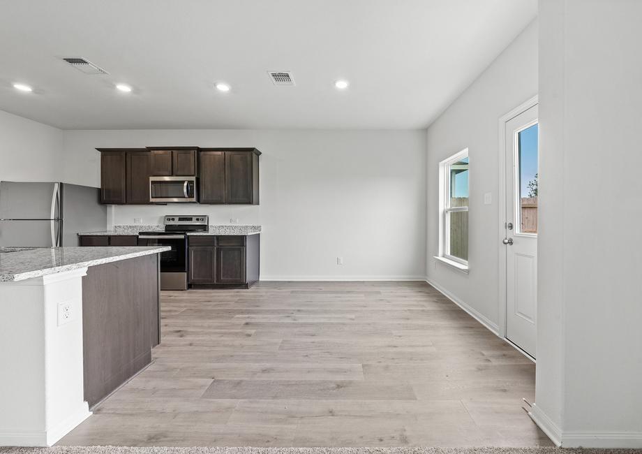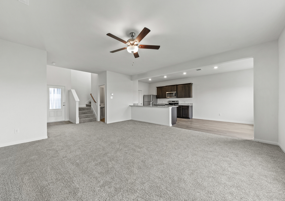 The open floor plan provides a fantastic space for hosting friends and family. The family room has plenty of space to gather everyone together, while the chef-ready kitchen is perfect for preparing meals or laying out snacks.