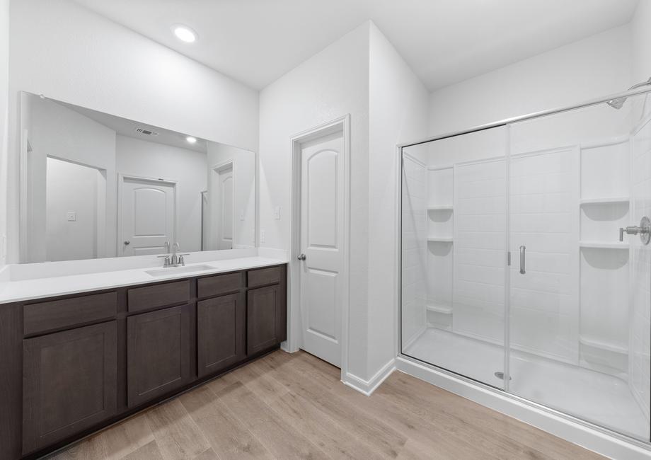 Spread around the Reed's great single-story layout are 4 spacious bedrooms. Retreat to the luxurious master suite, where tranquility awaits with plush carpeting, a walk-in closet, and an en-suite bathroom complete with a shower and oversized, internal linen closet. Three additional bedrooms in this floor plan offer the perfect versatility for guests, a home office, or a growing family.
