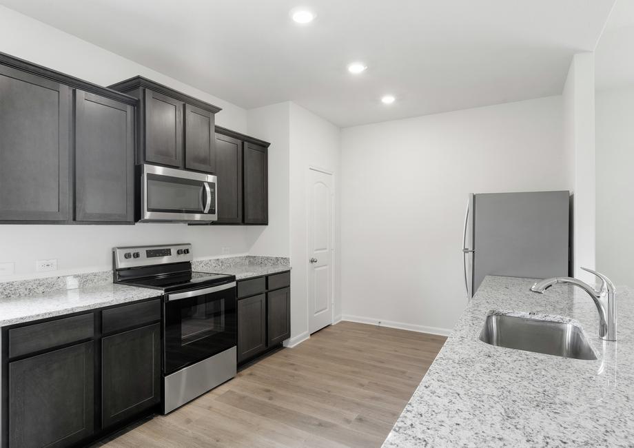 Every home needs a centerpiece, and you'll find that in the Reed floor plan's phenomenal kitchen. The kitchen, a chef's delight, features granite countertops, stainless steel appliances, and ample storage space, making meal preparation a breeze. With seamless access to the adjoining dining space, as well as the large family room, you'll find this kitchen is the perfect hub for life in your new home.