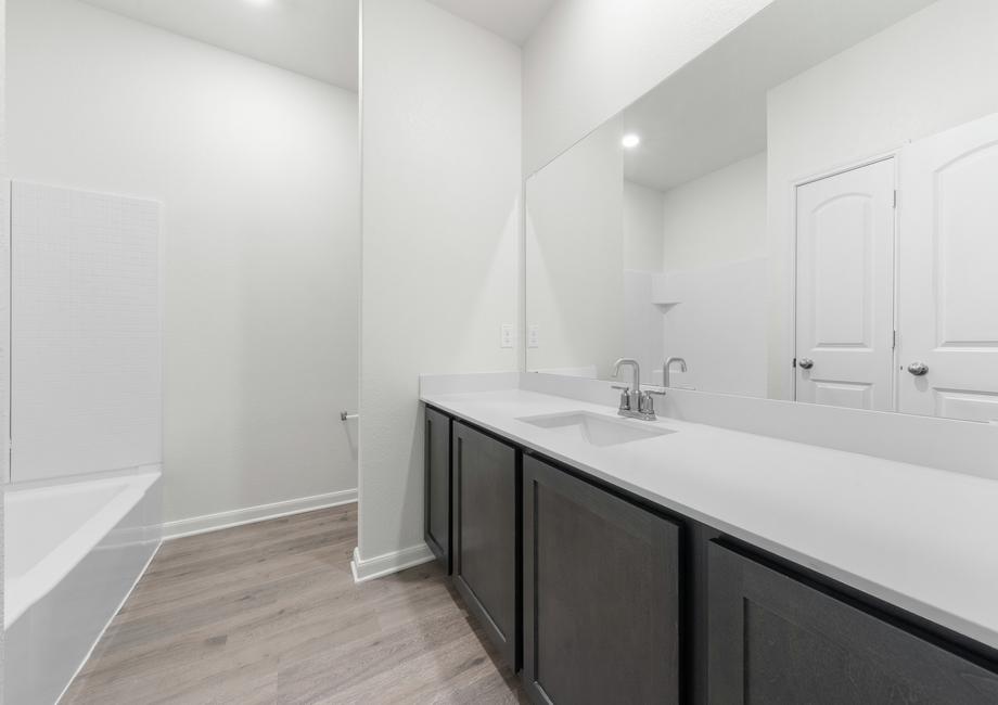 This four-bedroom home has two bathrooms, an open family room, chef-ready kitchen and more. In addition, this home comes outfitted with designer-selected upgrades and energy-efficient features, all included at no extra cost.Floor Plan Features: