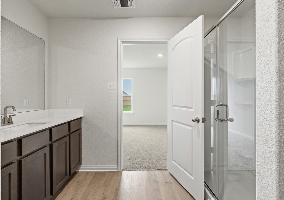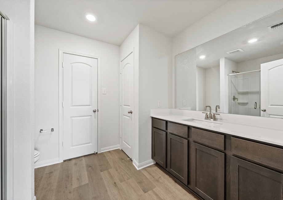 The Master Retreat has everything you need! The bedroom has space to fit all your furniture, and a window overlooking the backyard provides natural light. Hang your favorite outfits in the fantastic walk-in closet. An attached bath, built with beautiful luxury laminate plank flooring and quartz counters, creates a serene space to start or end your day.