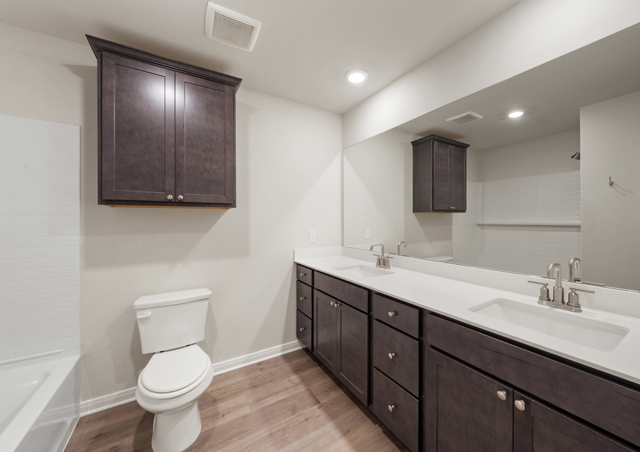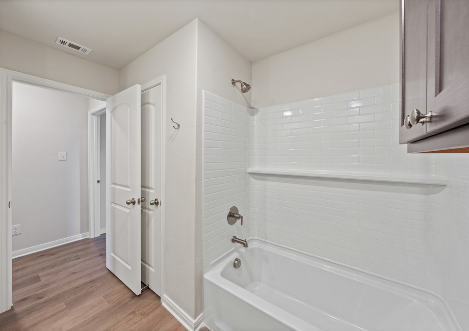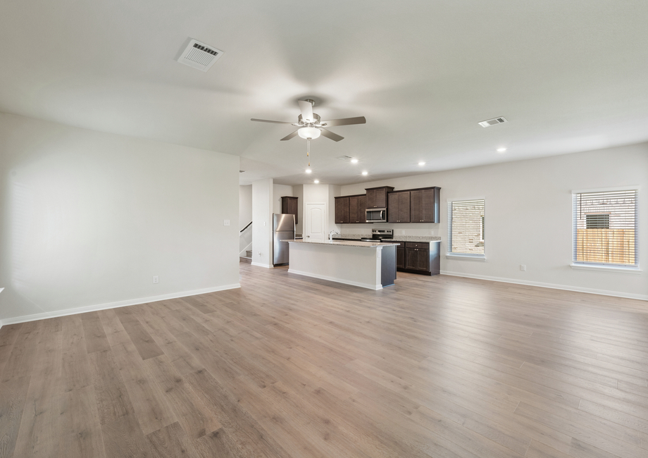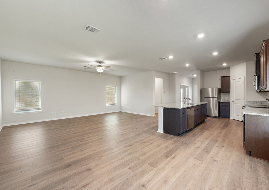 Featuring sprawling granite countertops and beautiful wood cabinetry, the Bluebonnet’s kitchen is designed for both style and functionality. A convenient kitchen island provides extra workspace and a perfect spot for casual meals or entertaining. The large pantry adds ample storage, keeping everything organized and within easy reach.