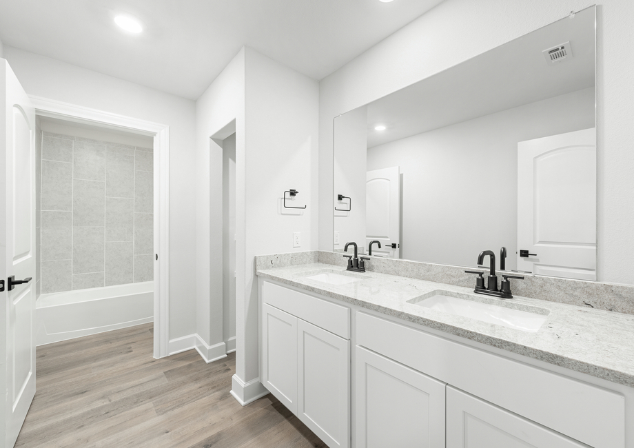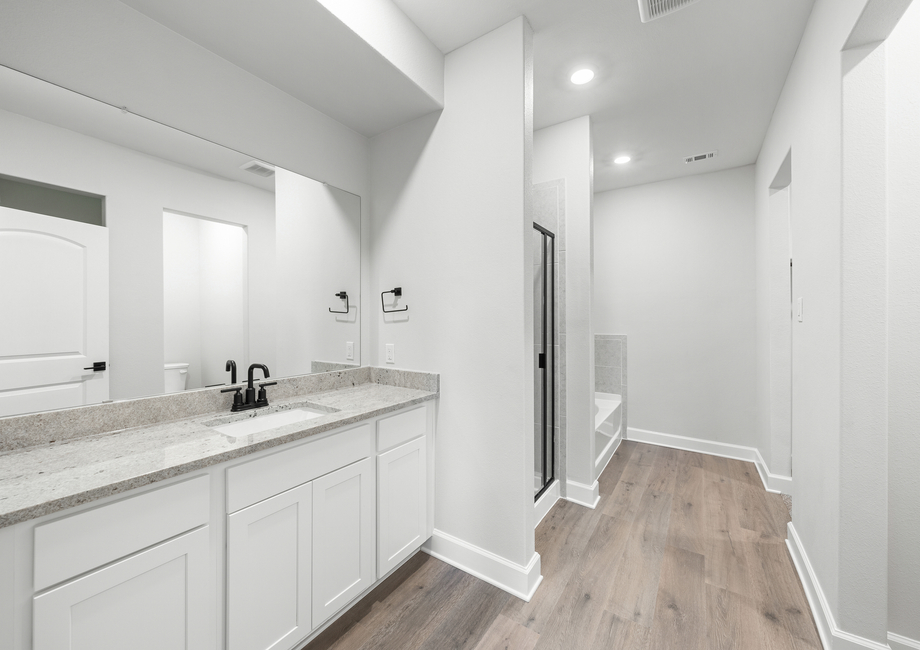 The master suite shines as a standout feature in this home. Flooded with natural light from a large window, the space feels bright and welcoming. The master bathroom boasts a double-sink vanity, an oversized step-in shower, and a convenient linen closet. Additionally, the spacious walk-in closet provides ample storage for all your wardrobe essentials.