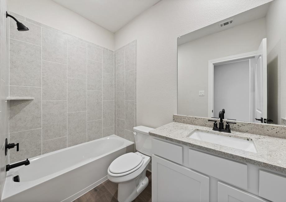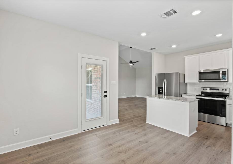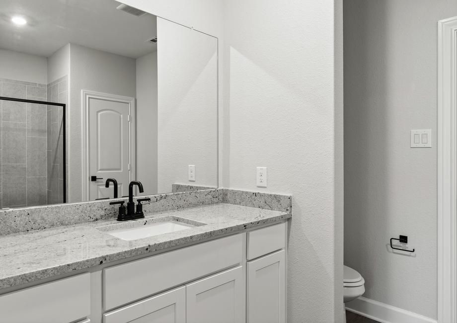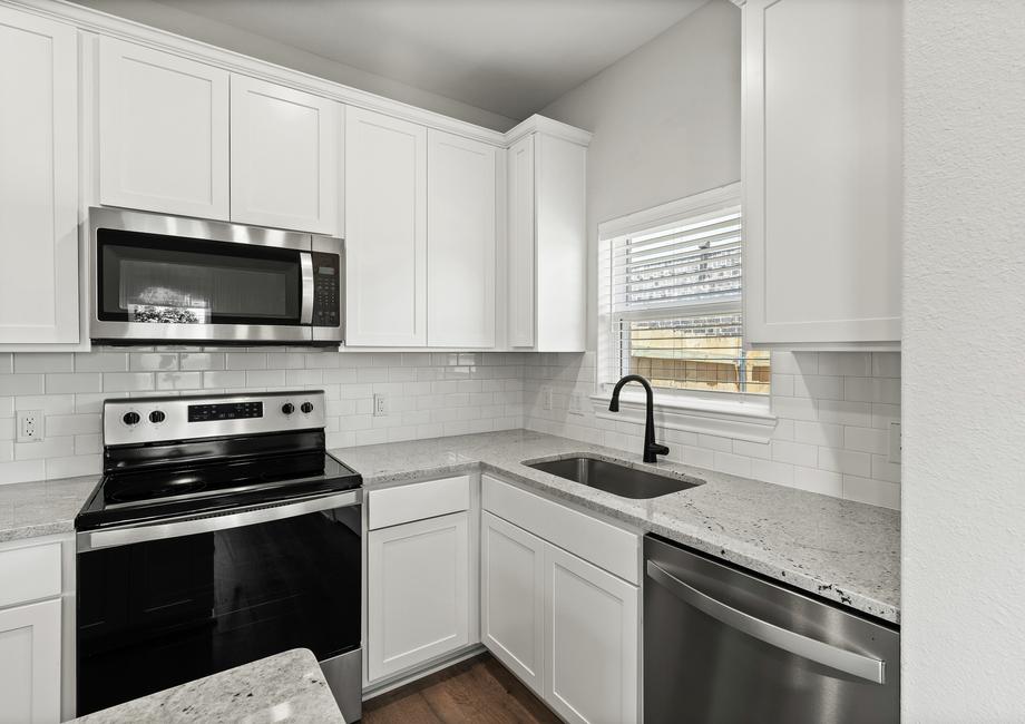 Whether you're an experienced chef or just starting out, the kitchen of the Sabine is sure to impress. With its designer cabinetry offering ample storage for dishes and cookware, and expansive granite countertops that provides plenty of prep space, every culinary task becomes a delight. Equipped with Whirlpool® appliances, cooking, cleaning, and storing food is made effortlessly convenient. Whether it's a casual weeknight dinner or a grand Thanksgiving feast, the Sabine's kitchen is fully equipped to meet your needs with style and functionality.