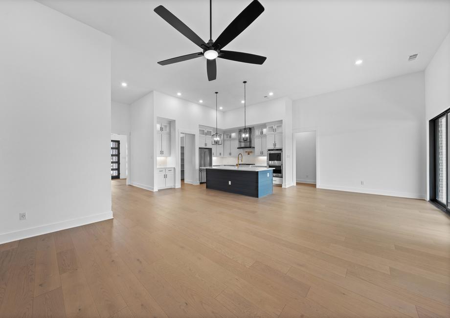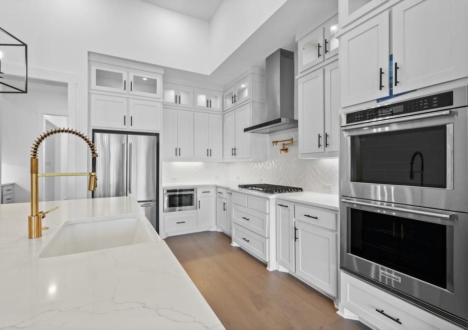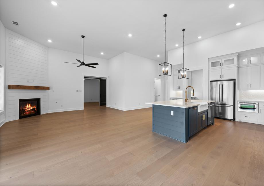 Equipped with elevated fixtures and features, the four-bedroom, three-and-a-half-bathroom Mantle floor plan offers homeowners the upgraded lifestyle they have been dreaming of. The exceptional, open-concept layout is functional for easy family living and hosting. Beautiful quartz countertops, a convenient kitchen island, modern tile backsplash, KitchenAid® appliances make this kitchen the focal point of the living area. Adjacent to the kitchen, the family room has plenty of space for lots of furniture. The secluded master suite is the perfect escape for homeowners after a long day. One of the most coveted features of this home is the covered back patio furnished with an outdoor kitchen that makes hosting easier than ever!
