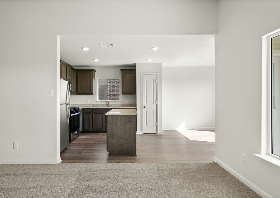 The stunning Carson offers three spacious bedrooms, two full bathrooms, a large family room and a chef-ready kitchen with a center island. Its open-concept layout seamlessly connects the kitchen, dining area and family room, which is ideal for both entertaining and everyday living. Enjoy the convenience of single-story living in this beautiful new home. Step outside to the wonderful, fully fenced-in back yard with a covered backyard that allows you to enjoy the outdoors no matter the weather.