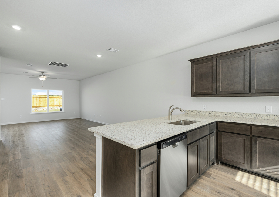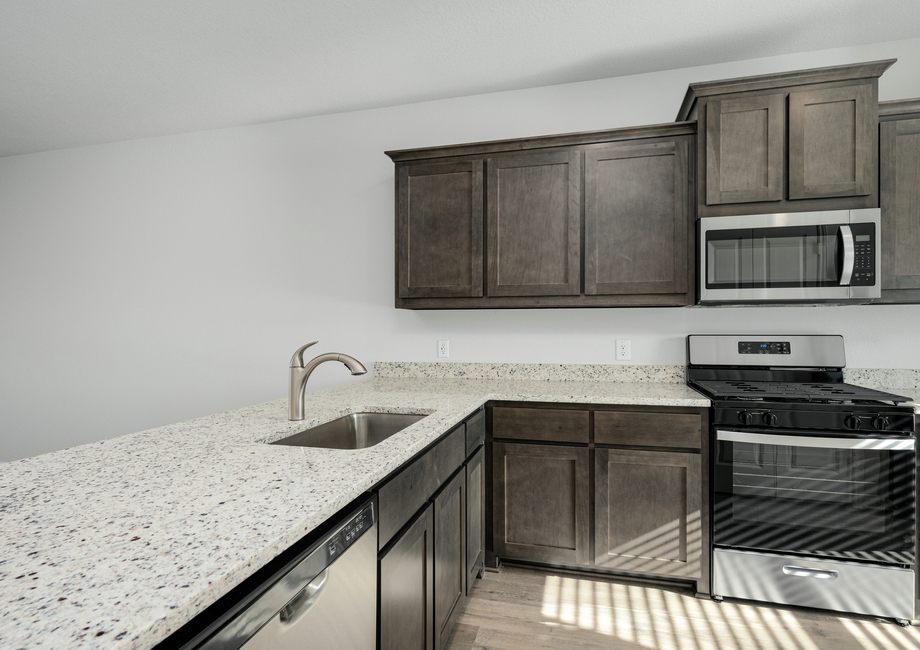 The Driftwood plan showcases the CompleteHome™ package by LGI Homes. This package comes incredible features and designer upgrades, all included at no extra cost. Energy-efficient Whirlpool® kitchen appliances, including the refrigerator, granite countertops, 36” upper wood cabinets with crown molding, luxury wood-style flooring, a programmable thermostat and a Wi-Fi-enabled garage door opener are just a few of the remarkable upgrades that come standard in this brand-new home. Don’t miss out on the opportunity to own this home. Schedule a tour today by calling (855) 441-6400.