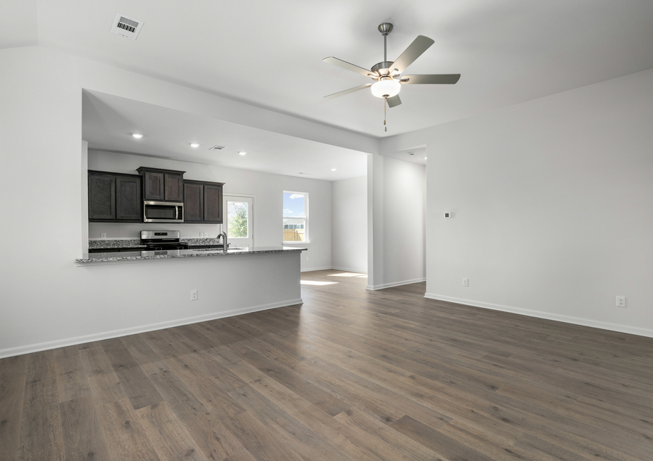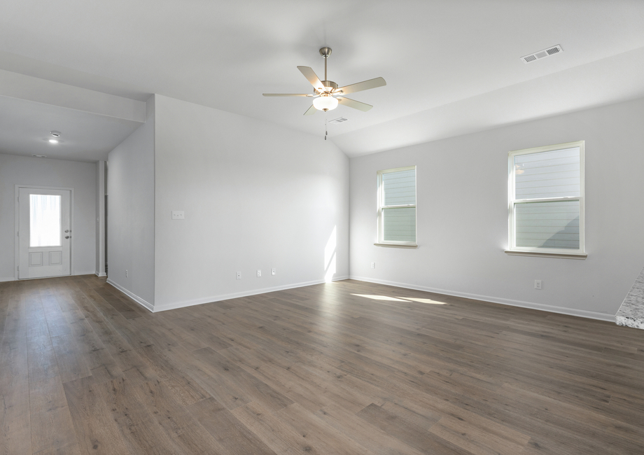 The family room is a focal point of this incredible home. The Reed plan at Vista West showcases a spacious family room conveniently open to the kitchen and dining room. This open layout is perfect for spending time and creating lasting memories with your friends and family. Additionally, the family room showcases great natural light, soaring ceilings and a ceiling fan.