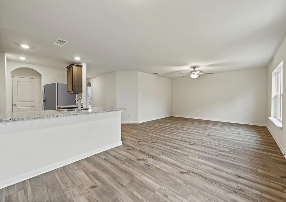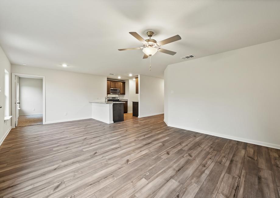 Placed right next to the kitchen and dining room, the family room of the Rio Grande at Vista West makes this house the perfect place to host. The spacious room is equipped to fit plenty of furniture so everyone can have a seat. Whether you are watching a movie with the family or hosting a Superbowl party, everyone will enjoy the family room!