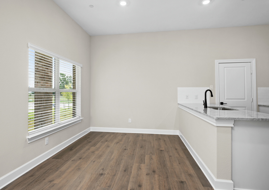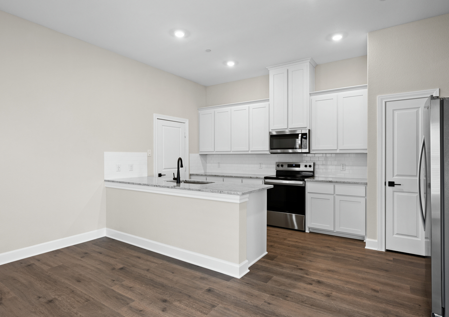 The chef-ready kitchen of the Marsh is designed to inspire, featuring beautiful white wood cabinetry, gleaming granite countertops, a stylish tile backsplash and upgraded stainless steel appliances. A spacious breakfast bar adds extra counterspace, making meal prep and casual dining both easy and enjoyable. With abundant storage in the cabinets, drawers and pantry, every home chef will have plenty of room for cookware, ingredients and kitchen essentials.