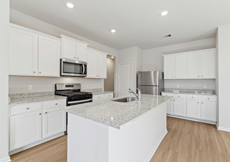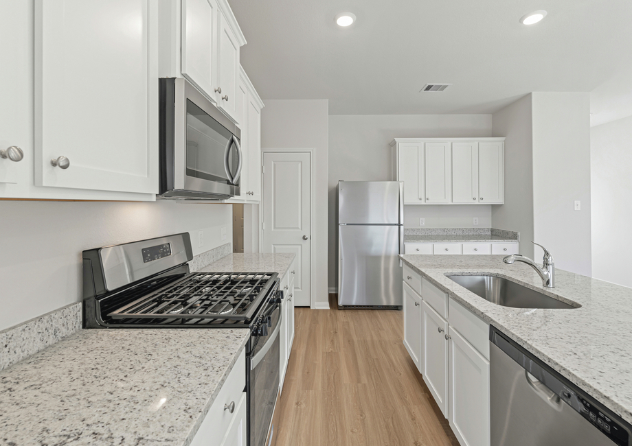 A luxurious kitchen filled with space is waiting for you in the Chambers floor plan. This kitchen features an abundance of granite counter space, brand-new stainless steel appliances, and modern white wood cabinets. These modern features are sure to elevate your kitchen all at no extra costs to you. making it everyone’s favorite spot in the home!
