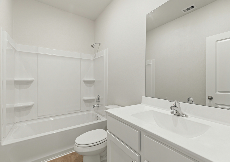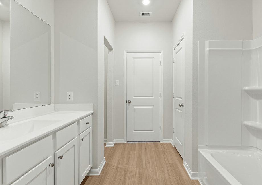 Look forward to relaxing and unwinding in the beautiful private master retreat! Secluded at the back of the home the master bedroom features lush carpeting and a window that overlooks the backyard. The sizable bedroom is large enough to fit a king-size bed and dresser. A vanity with lots of counterspace and a linen closet are two exceptional features found in the master bathroom. To complete the suite is a grand walk-in closet large enough to fit any wardrobe.