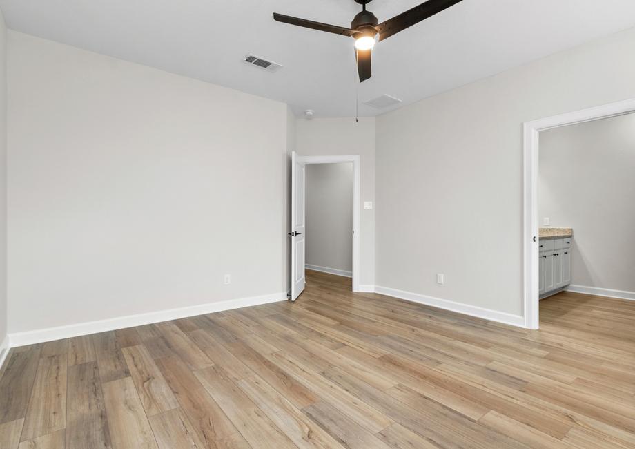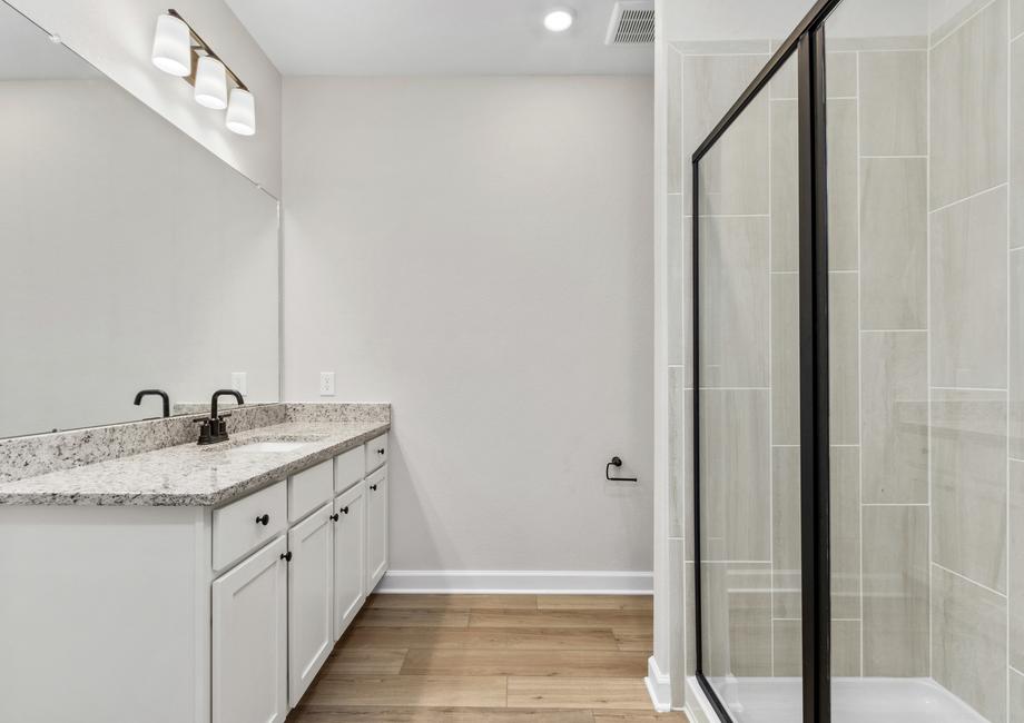 Relax and unwind in the private master suite of the Robin. Featuring two large windows, the bedroom is large enough to accommodate all of your bedroom furniture including a king sized bed and side tables. Indulge in the luxurious master bath, highlighted by a sprawling vanity and a walk-in shower.