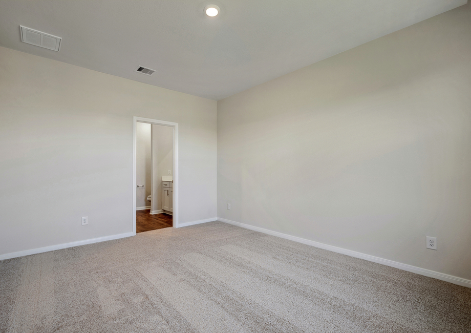The Sabine plan offers a well-equipped contemporary kitchen that you will love. This open and bright area includes granite countertops, gorgeous wood cabinets topped with crown molding and energy-efficient Whirlpool® appliances. LED flush mount ENERGY STAR lights and windows in both the kitchen and adjacent dining room add even more value and energy efficiency to this picture-ready kitchen.