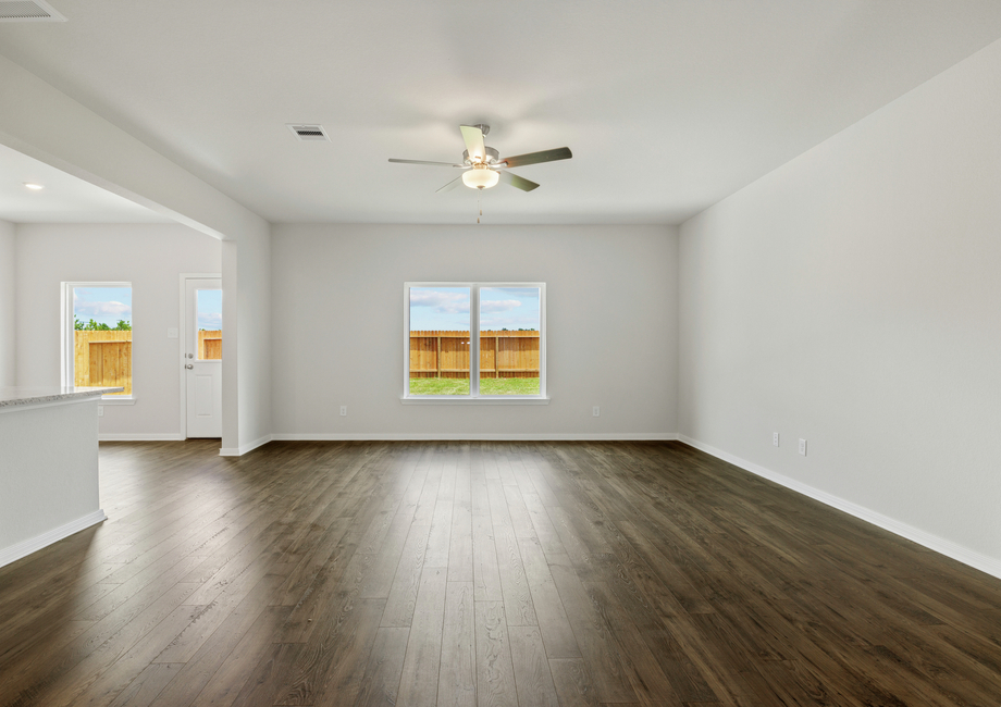 The Willow plan at Pinewood Trails has a massive entertainment space consisting of a family room, dining room and an open kitchen. Enjoy a space where your family can have a quick breakfast before school and work, while also being able to enjoy a more traditional space where you can host celebrations and formal dinners.