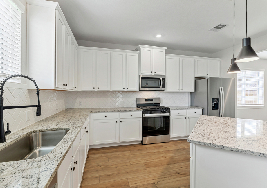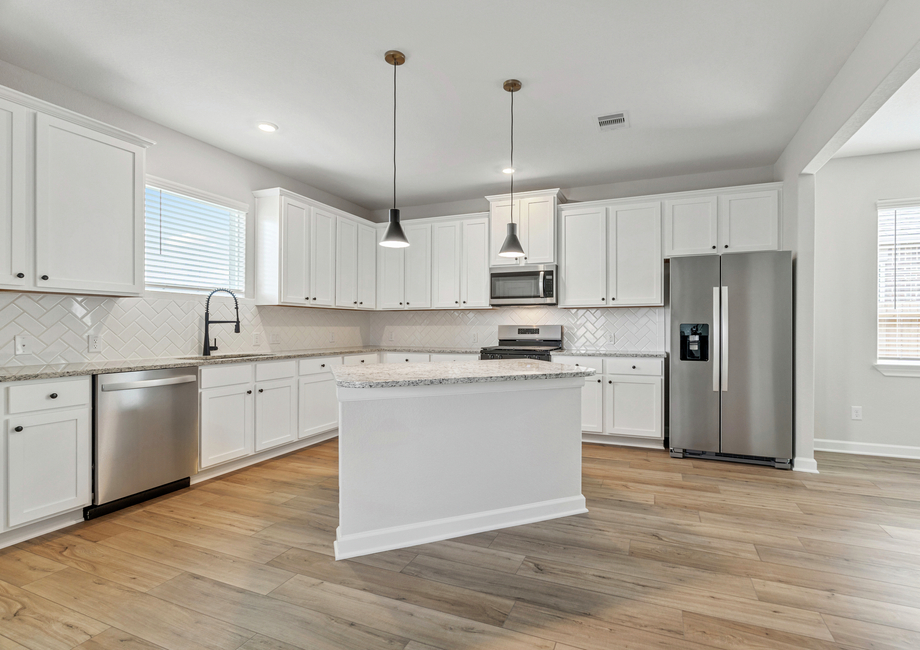 A chef-ready kitchen with designer upgrades awaits for you in the Hendrie! With sparkling granite countertops, white cabinetry with crown molding, stainless steel appliances, and a large center island, the Hendrie kitchen is nothing short of a dream. The kitchen provides easy access to both the family room and the dining room so you won’t miss out on any of the action while cooking dinner for friends and family.