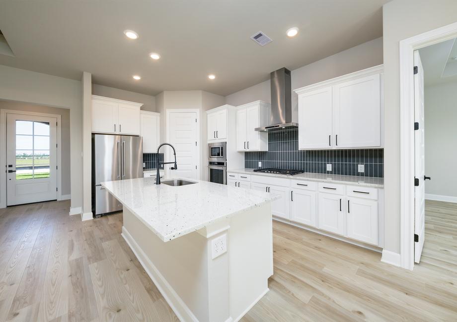 The kitchen is one of the most important spaces in a home, and you will fall in love with this one! The spacious layout allows for multiple people to be in the kitchen at once and supplies tons of counter and storage space. This well-equipped gourmet kitchen is complete with a large island, gorgeous countertops and cabinetry, and a matte black Moen faucet.Exceptional Value
