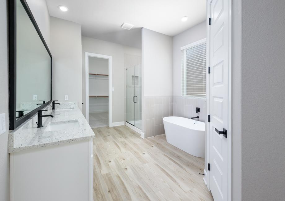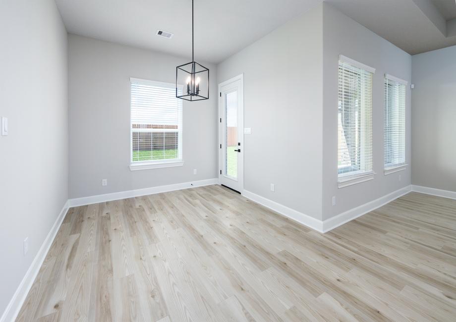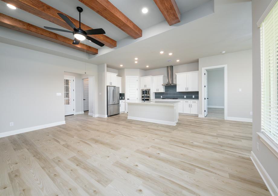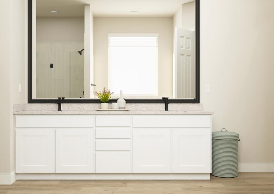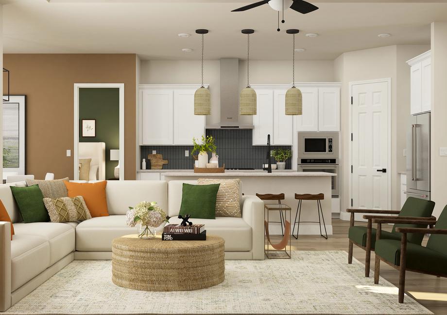 The Iris plan at Sierra Vista features an array of modern upgrades at no added cost to you. A full suite of stainless steel KitchenAid appliances, sprawling granite countertops, 42” upper wood cabinets with crown molding, blinds throughout, a covered outdoor living area and engineered laminate wood flooring are just a few of the desirable upgrades that come standard in the Iris plan.Community Amenities: