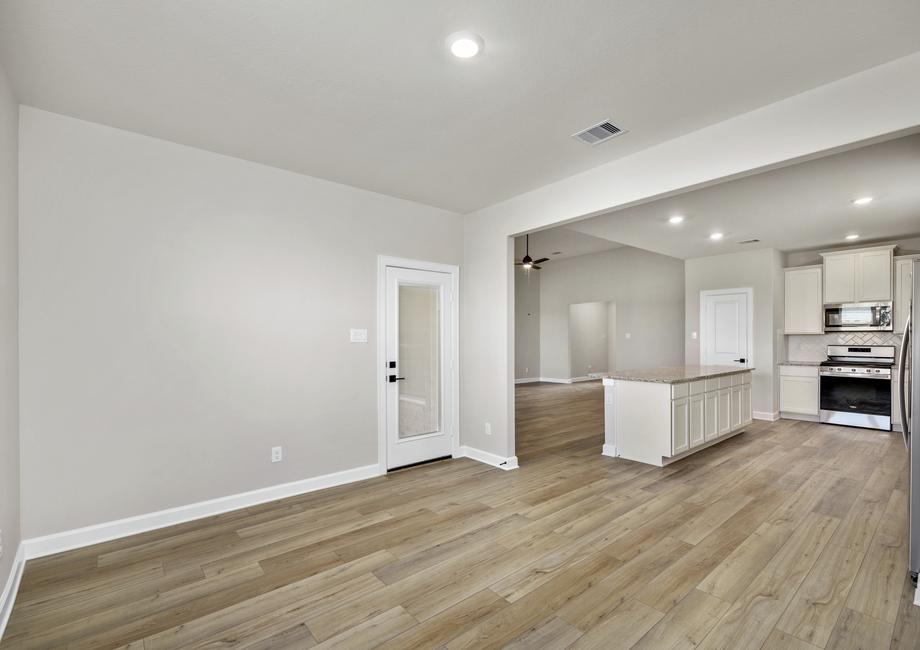 The Leland plan is an inviting, single-story home found within the exceptional neighborhood of Sierra Vista. As you walk through the front door, you are greeted by the foyer, leading into the expansive living area, complete with a designer kitchen, massive family room, and a large dining area that leads to the covered back patio. With four bedrooms, including the luxurious master suite, and two full baths, space is never an issue inside the Leland.