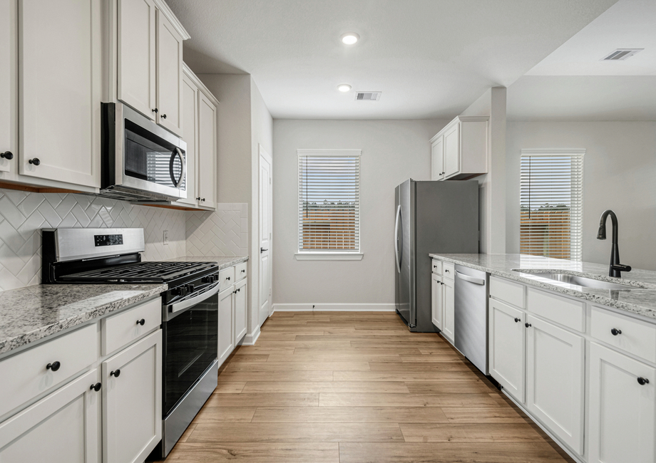 Filled with designer upgrades at no extra cost as part of the CompleteHome PlusTM package, the Oak plan is sure to exceed all your expectations! The beautiful kitchen will feature all new stainless steel appliances including a stove, microwave and refrigerator. Granite countertops, white cabinets with hardware, and backsplash will elevate the kitchen. A programmable thermostat, double-pane windows and a Wi-Fi-enabled garage door opener are just some of the energy-efficient conveniences you will get to enjoy in you new home!