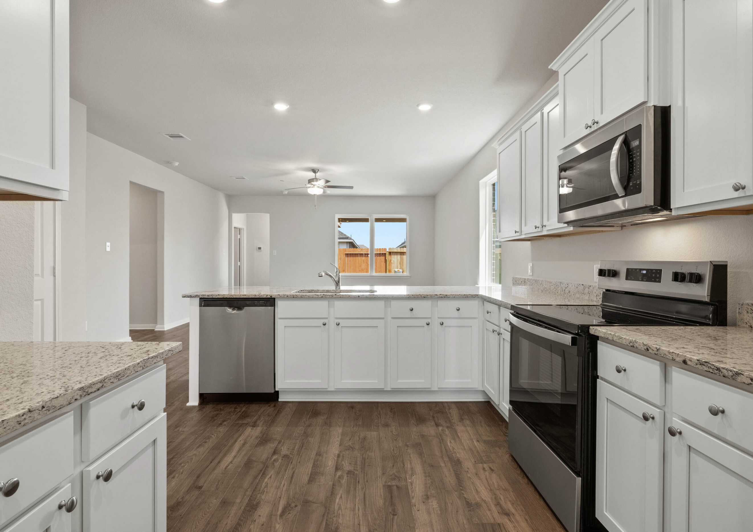 The entertaining areas in the Montgomery are open and spacious, creating the perfect backdrop for many memory-making events to come. The family room features a large window overlooking the back yard and opens to the chef-ready kitchen. Stylish plank flooring flows from the dining room to family room, and recessed LED lighting ensures your meals will be seen in a positive light. The incredible kitchen comes equipped with a full suite of Whirlpool® appliances, granite countertops and high-grade wood cabinets topped with crown molding. A sprawling breakfast bar is the perfect spot for morning coffee, quick meals or serving food at your next get-together.Community Amenities: