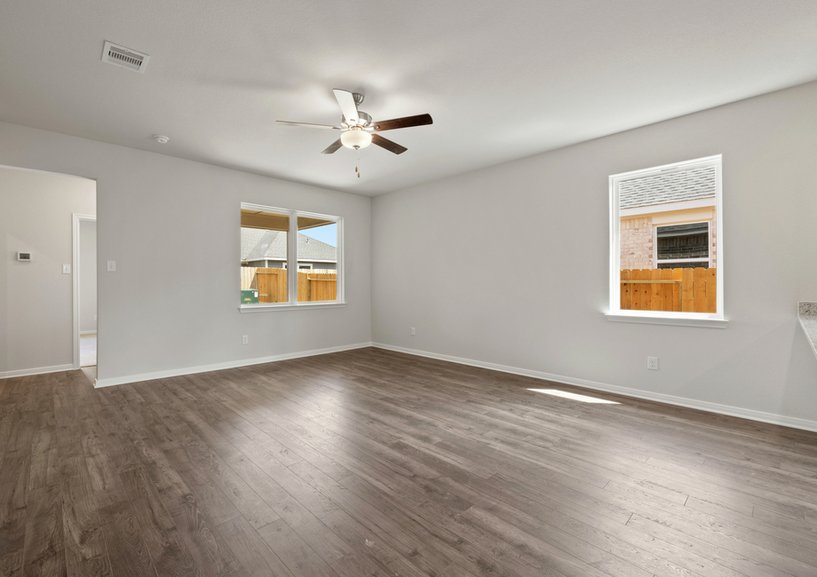 The Montgomery plan by LGI Homes is a large home that features an incredible storage space and three large bedrooms. Designer upgrades and features are also found throughout the home including stainless steel appliances, granite countertops, lush carpet in the bedrooms and energy-efficient technology. The master retreat has an exceptional window that overlooks the backyard, a luxurious en-suite bathroom and a walk-in closet.
