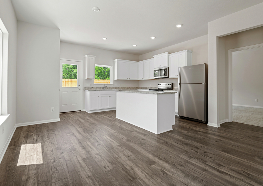 This single-story home features four bedrooms, two full bathrooms, and a spacious open concept. The chef-ready kitchen boasts a beautiful island that overlooks the dining room and family room. Tucked away at the back of the home is the expansive master suite, complete with its own bathroom and a huge walk-in closet. The Leader floor plan allows you to enjoy the space you need and the upgrades you love, all in a convenient, one-story design.