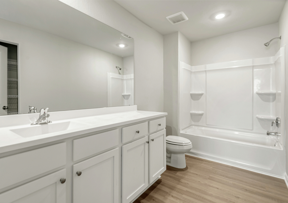 Comfort and relaxation await in the private owner’s suite of the Osage. Two windows in the expansive bedroom offer views of the backyard and keep things bright during the day. Escape to your own private oasis in the inviting master bathroom. Soak in the tub or rejuvenate in the glass-enclosed shower. A large vanity, linen closet and a huge walk-in closet keep clutter out of sight, so you can start and end your day in a beautiful way.