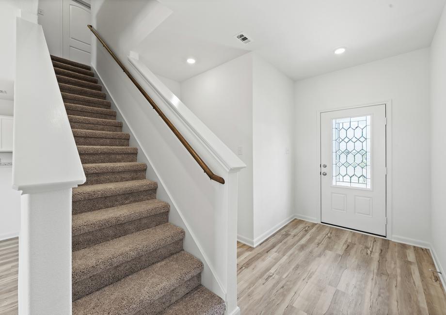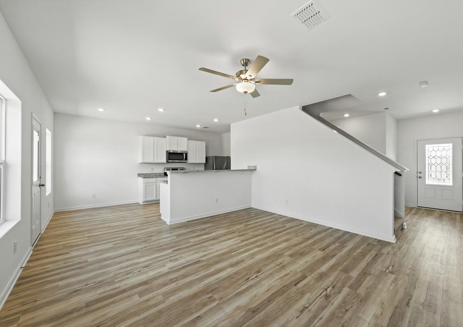 The two-story Holly plan features a large, open-concept entertainment space downstairs that is perfect for hosting. Every bedroom is located upstairs to add additional privacy. An upstairs utility room makes laundry days a little easier! This plan offers plenty of space for your family to grow.