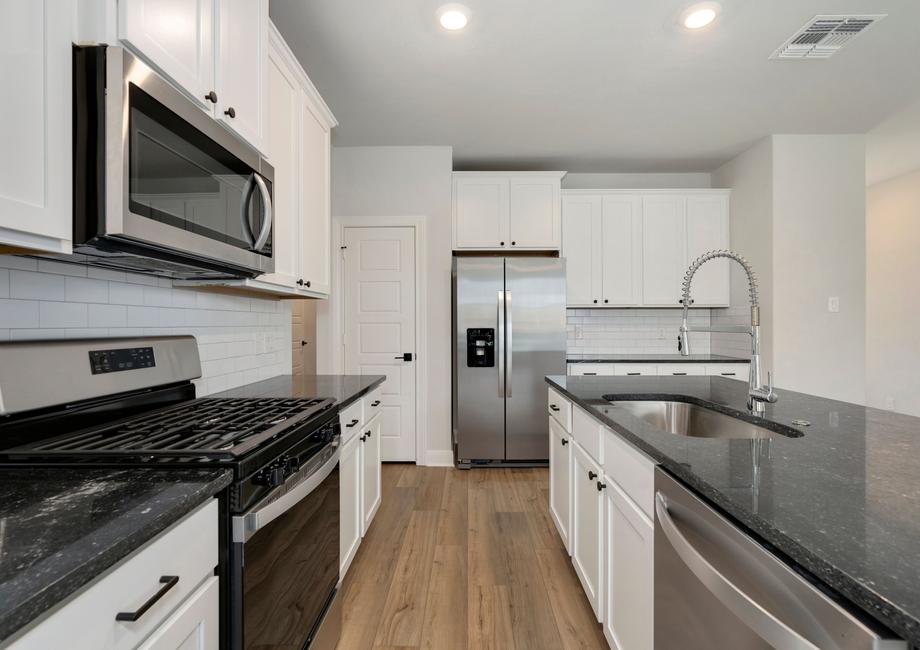 This home includes many designer extras such as double-pane Low-E vinyl windows, LED flush mount ENERGY STAR lights in the kitchen, and an attached 2-car garage paired with a Wi-Fi-enabled garage door opener. A USB outlet in the kitchen allows for easy charging of all your electronics, or for playing music and videos while cooking in the spacious kitchen.