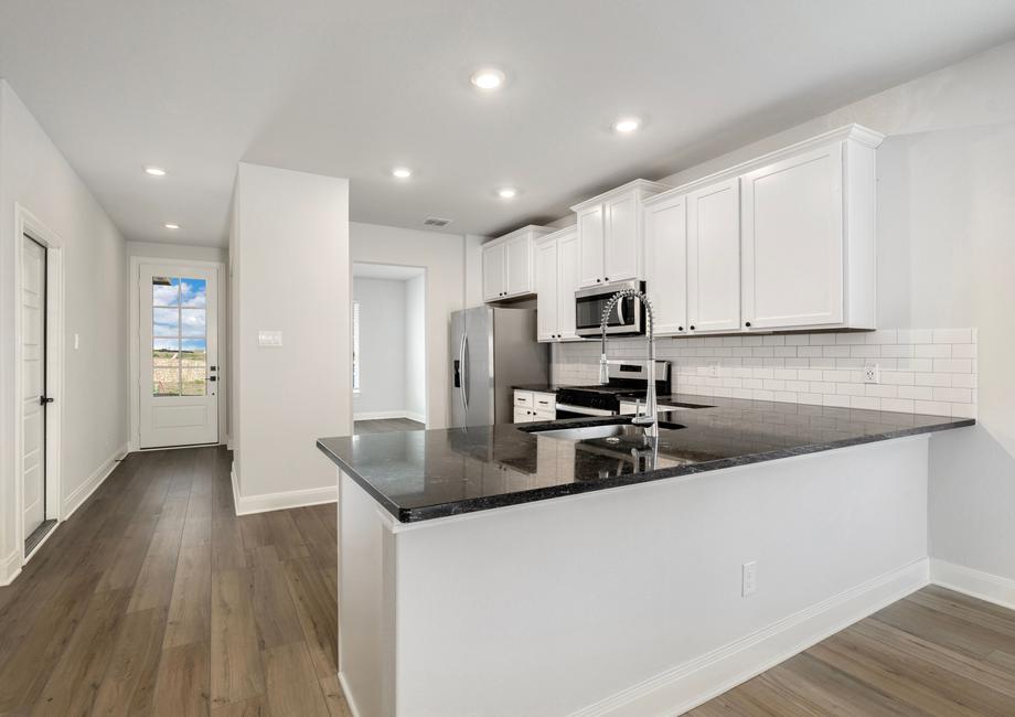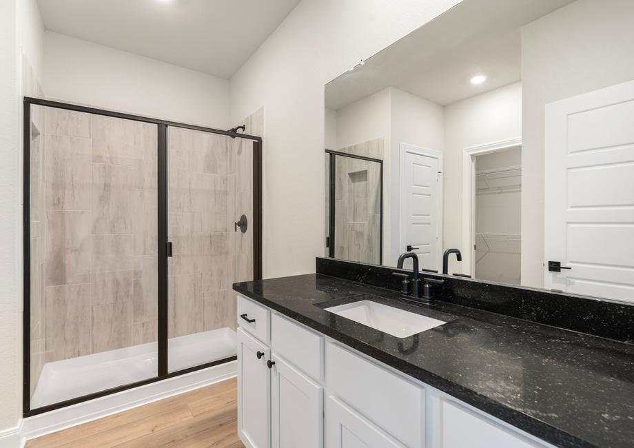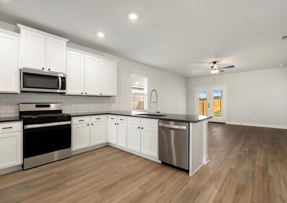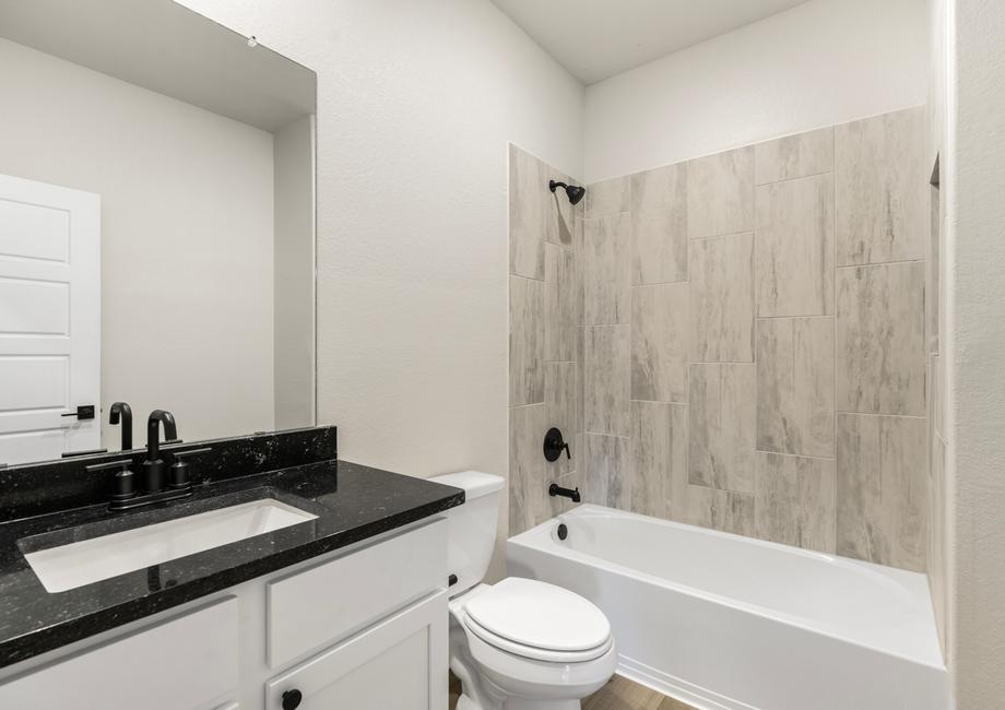 The Fannin plan comes with a host of impressive upgrades. Every home at Hightop Ridge comes outfitted with LGI Homes’ CompleteHome Plus™ interior package. Stainless steel kitchen appliances, granite countertops, oversized wood cabinetry with crown molding detail, 2” faux wood blinds on all operable windows and a Wi-Fi-enabled garage door opener are just a few of the remarkable upgrades included in every home.