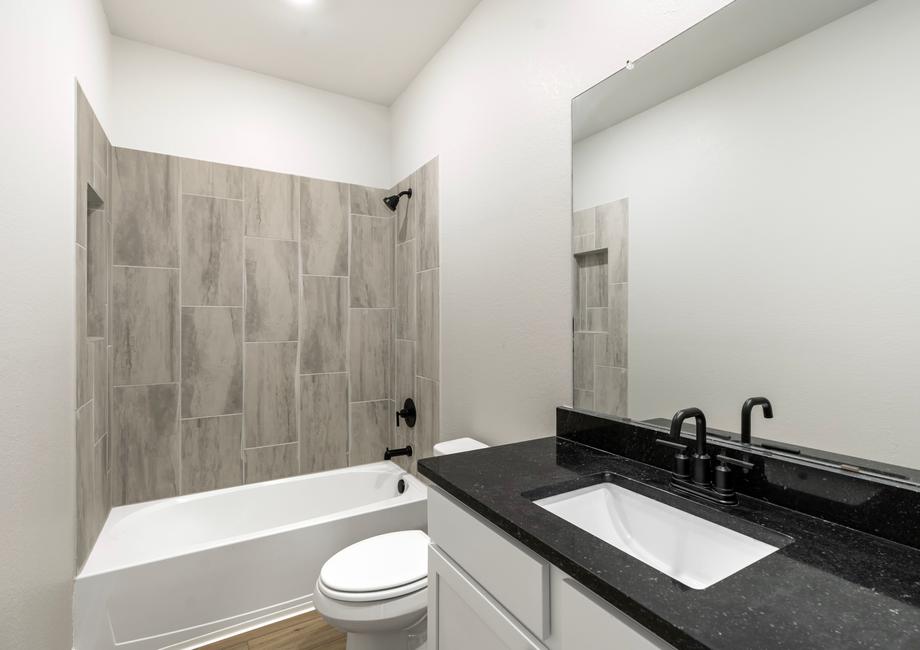 The Jasper showcases a stunning kitchen filled with stainless-steel Whirlpool® appliances, polished granite countertops, recessed lighting, and a large single basin sink that will fit all of your pots and pans. Whether you love to cook or not (yet), this kitchen will make it a breeze!