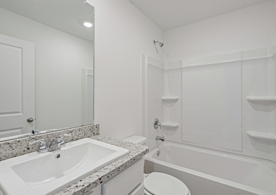 The Ash plan comes with LGI Homes’ CompleteHome™ package that features energy-efficient Whirlpool® appliances, granite countertops, 36” upper wood cabinets with crown molding, luxury wood-style flooring, a Wi-Fi-enabled garage door opener, programmable thermostats and much more. This incredible interior package comes included at no extra cost to you, further adding to the design and value of this home.