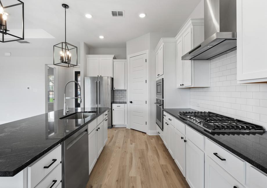 The well-equipped kitchen of the Chester plan features stainless steel kitchen appliances, 42” upper cabinets with crown molding and sprawling granite countertops. Enhanced by a large center island, this chef-ready kitchen includes plenty of counter and cabinet space in addition to a large walk-in pantry. Just around the corner you will find the mudroom with a built-in bench ideal for storing bags and backpacks.