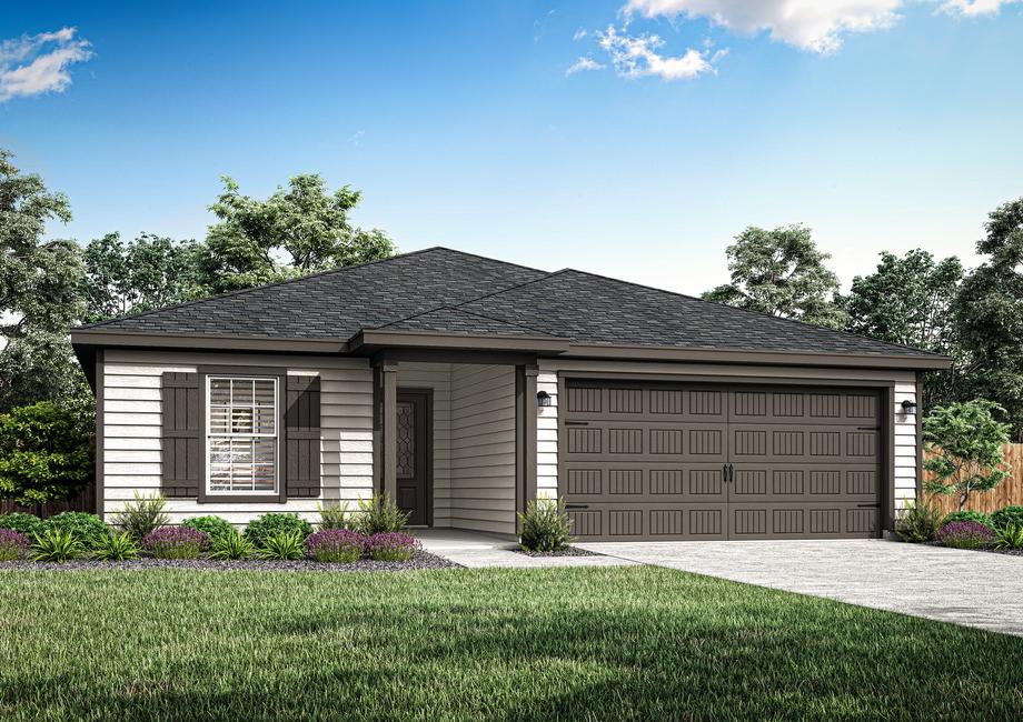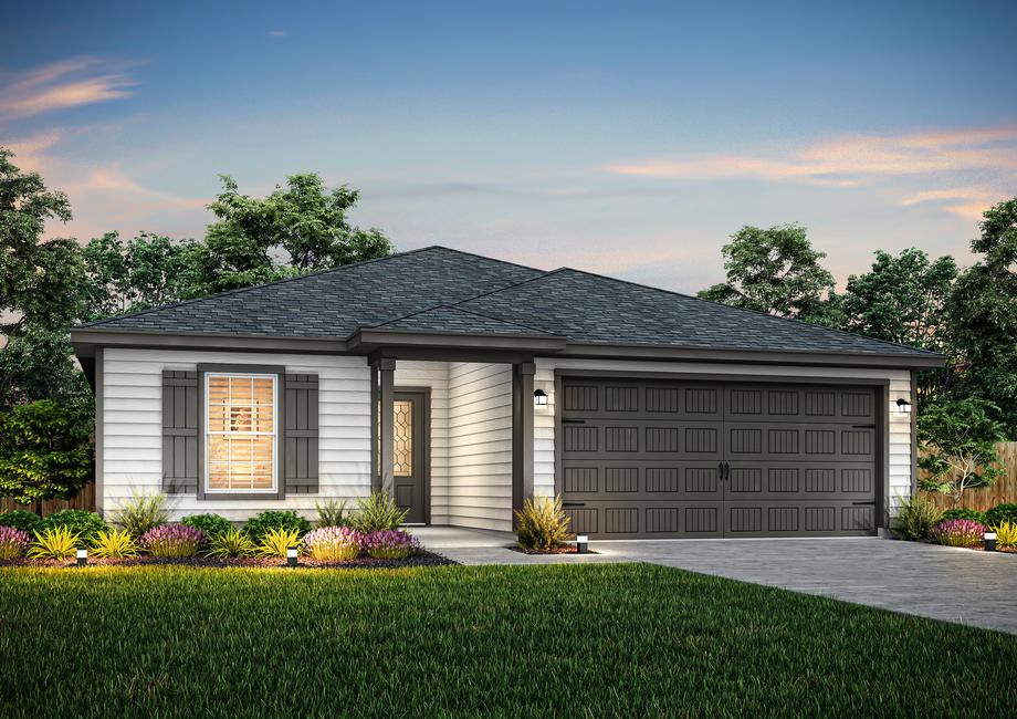 A dusk rendering of the Conroe floor plan