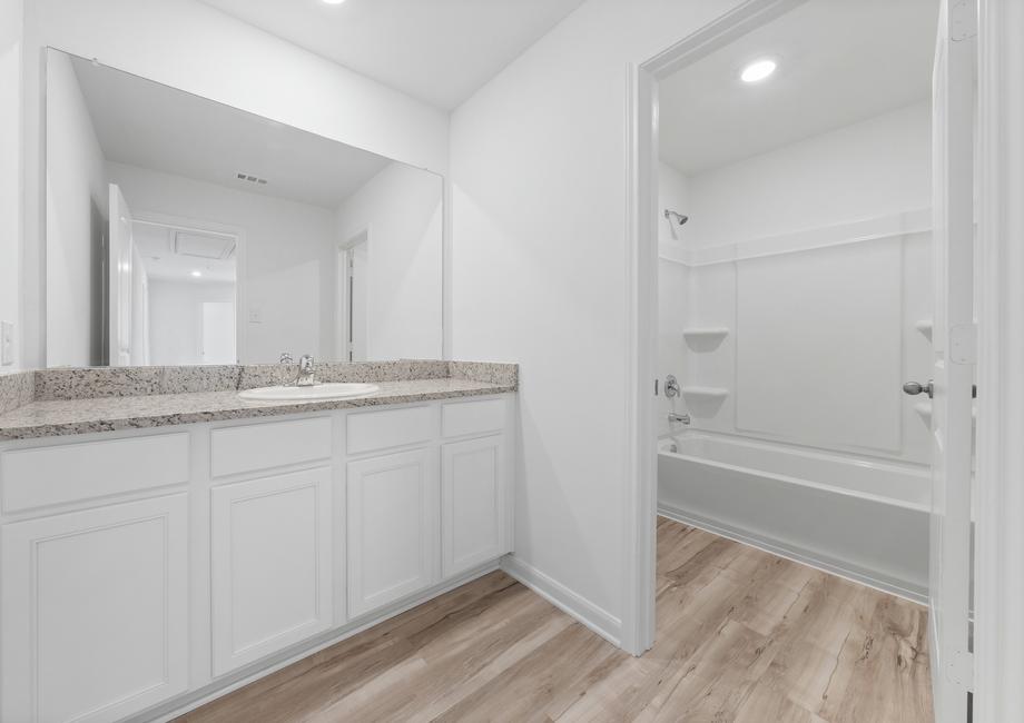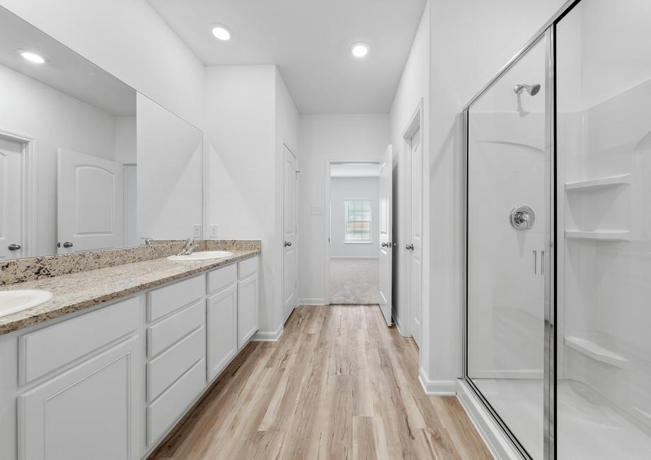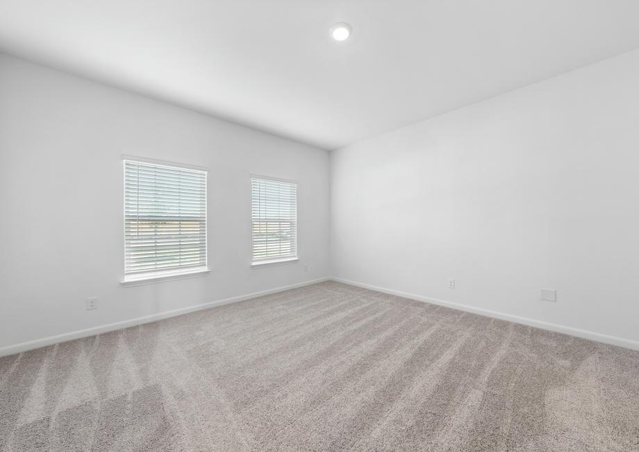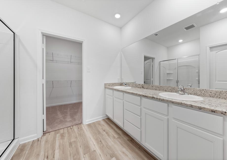 There is no better place to unwind after a long day than the private master retreat featured in the Sonora plan! The bedroom comfortably fits a king-sized bed and dresser. Modern finishes, including a double-sink vanity and a linen closet that provides extra storage, fill the bathroom giving it a luxurious feel. In addition, the sizeable walk-in closet offers more than enough space to fit any wardrobe.
