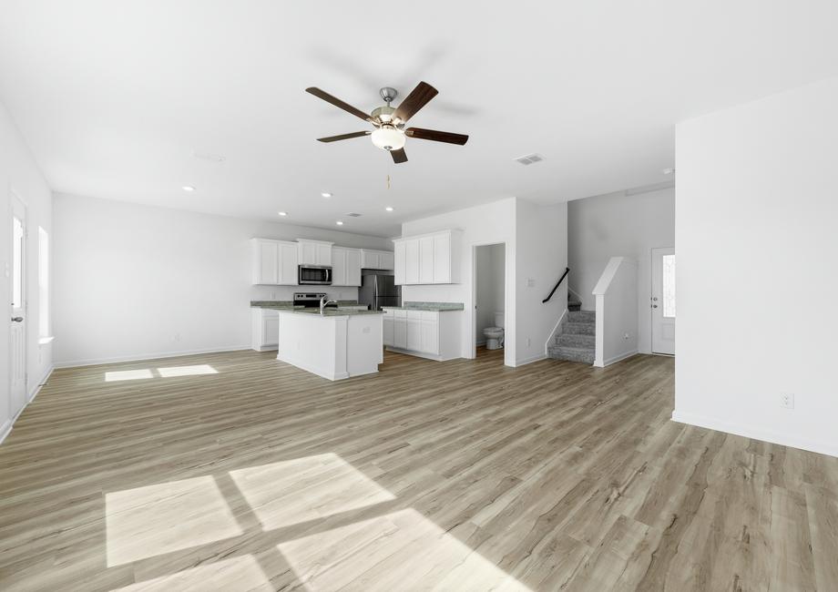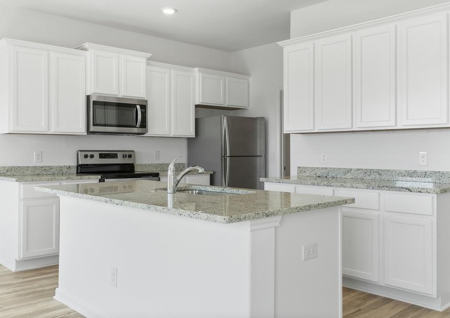 An exceptional kitchen is waiting for you in the Sonora at Rosewood Estates. Beautiful grey granite countertops, stainless steel appliances, and modern white wood cabinets are featured in the spacious kitchen. Additional counterspace provides space to cook your family’s favorite recipes. The kids will love the grand walk-in pantry that can be filled with all their favorite snacks. The kitchen is sure to be everyone’s favorite spot in the home!