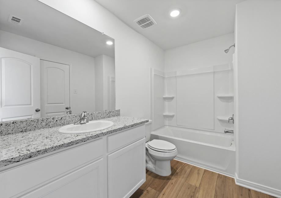 The Torres plan is constructed with LGI Homes’ CompleteHome™ interior package. Upgrades included in this home are a full suite of energy-efficient Whirlpool® appliances, including the refrigerator, sparkling granite countertops, designer wood cabinets with crown molding detail, LED flush mount ENERGY STAR lighting and a USB charging outlet; just in the kitchen! Throughout the home, you will find upgrades such as a programmable thermostat, double-pane, Low-E vinyl windows, a Wi-Fi-enabled garage door opener and more. All of these remarkable upgrades come standard at no additional cost.
