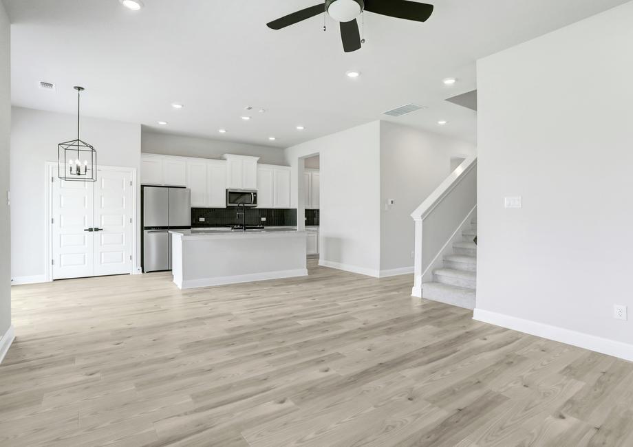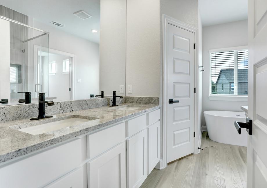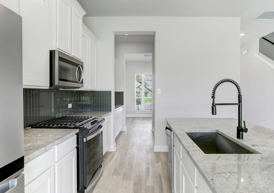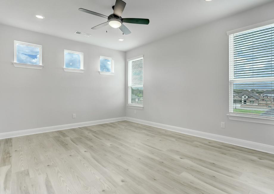 The Brazos plan has an incredible, upgraded kitchen. Open to the breakfast area and family room, this space is perfect for preparing family meals and holiday feasts. Showcasing a full suite of stainless steel KitchenAid appliances, granite countertops, a butler’s pantry and plenty of storage space, this kitchen comes completely chef ready!