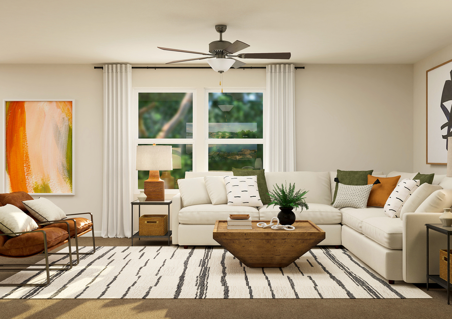 The Cascade floor plan features a wonderful layout that seamlessly connects the kitchen, dining room and family room, creating an open and inviting space for everyday living. This connected design makes it easy to cook, dine and relax while still being part of the conversation, making the home feel bright, spacious and welcoming. Whether you're hosting friends and family or enjoying a quiet evening at home, this open layout is perfect for bringing everyone together.