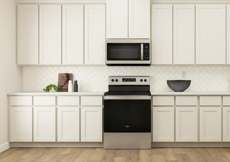 The kitchen in the Cascade is both beautiful and functional, featuring stunning white wood cabinets, sprawling granite countertops and energy-efficient appliances. With plenty of space for meal preparation and storage, this thoughtfully designed kitchen makes cooking, cleaning and everyday tasks more enjoyable. Whether preparing a quick breakfast or hosting a dinner with friends and family, this kitchen is designed to make every moment easier and more enjoyable.