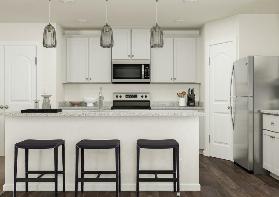 The Davidson floor plan has a spacious and airy feel that has been thoughtfully designed with your needs in mind. The large chef-ready kitchen is open to the dining area and family room, creating a seamless open layout. You will find a host of upgrades in the kitchen including stainless steel kitchen appliances, gorgeous granite countertops, 36” upper cabinets and a large island.Incredible Master Suite