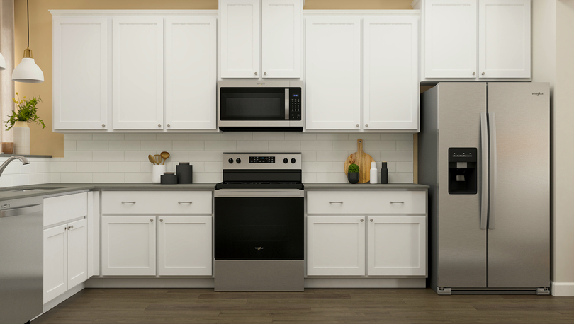 Eldorado by LGI Homes offers a variety of move-in-ready homes equipped with modern layouts, designer features and included upgrades. Our stunning move-in ready homes include three-bedroom, two-bathroom layouts up to five-bedroom, three-bathroom layouts, and feature LGI Homes' exclusive CompleteHome Plus™ package, designed to add style and energy-efficiencies to each home. The kitchen in every home at Eldorado comes equipped with stainless steel Whirlpool® kitchen appliances, including the refrigerator, quartz countertops, 42-inch upper cabinets and recessed ENERGY STAR lighting. Stylish plank flooring, two-tone interior paint, and 2-inch faux wood blinds throughout the home add to the style of these incredible brand-new homes in Bremerton.