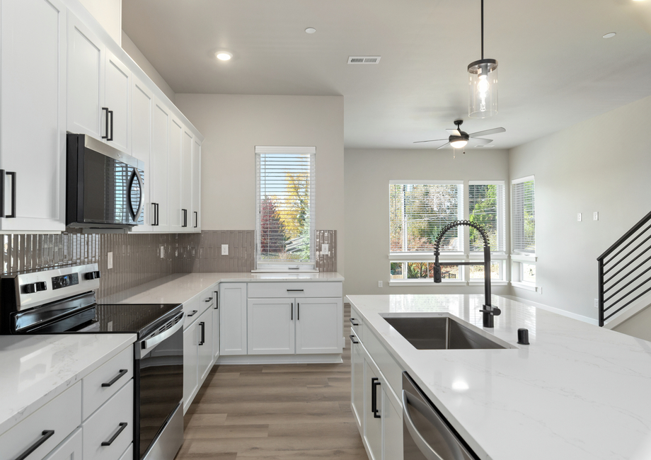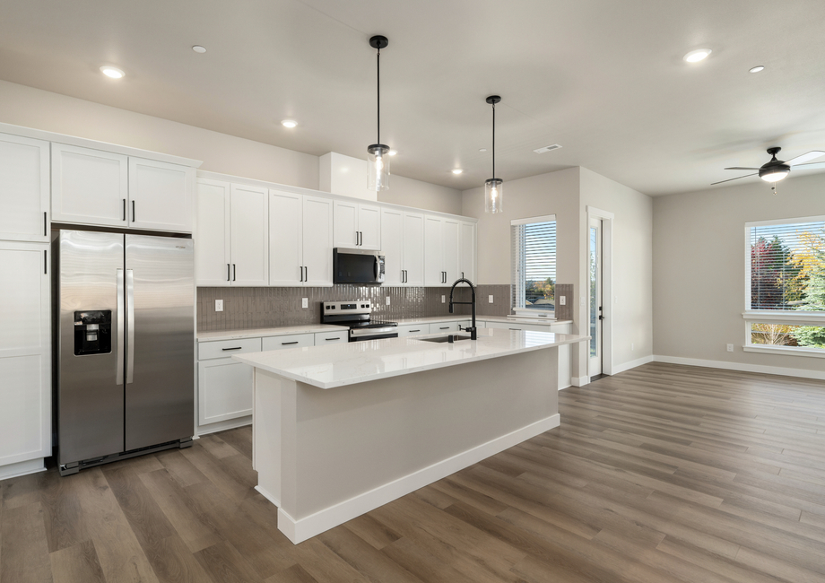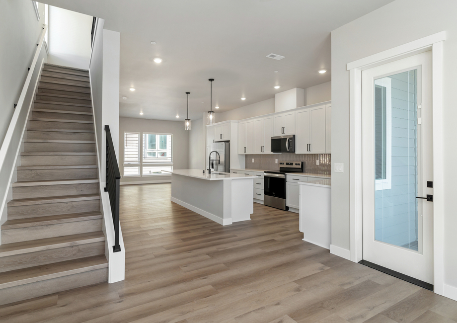 On the second floor, the Madelyn invites you to experience the perfect balance of comfort and sophistication. The expansive family room becomes the heart of the home, offering a warm setting for everything from movie nights to holiday celebrations. Just steps away, the dining room and kitchen create a seamless space for both casual meals and memorable dinner parties, with modern finishes that make every detail shine. Extending the living space outdoors, the covered deck provides a breezy retreat for morning coffee or sunset conversations, adding yet another layer of charm to this versatile level.