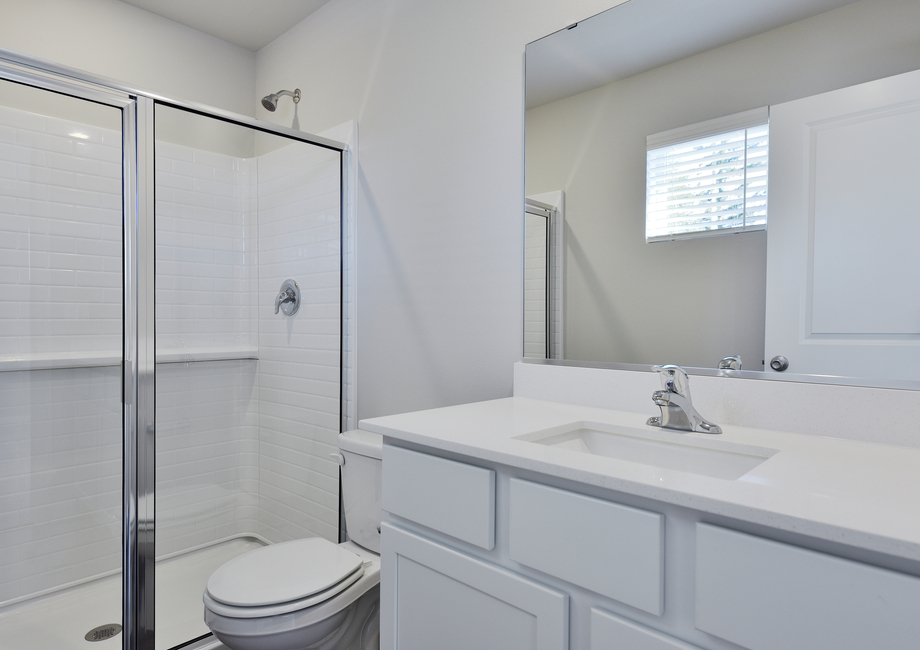 The Crane plan at Heritage Gardens has three spacious, upstairs bedrooms. All of these rooms offer plenty of space for your king-sized furniture as well as gorgeous natural light. The master bedroom is in the front of the home and has its own private bathroom. Inside the bathroom, you’ll find stunning vanity, a tub/shower combination and great cabinet storage.