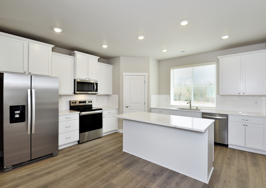 You will love cooking in the well-equipped kitchen of the Gregory, which seamlessly connects to the dining and living spaces. A spacious breakfast bar is the perfect space for a quick coffee, and the connected dining area is ideal for a meal with the family. A full suite of Whirlpool® stainless-steel appliances, including a refrigerator and built-in microwave, are included with this beautiful home. Enjoy your next meal in the kitchen of the Gregory!